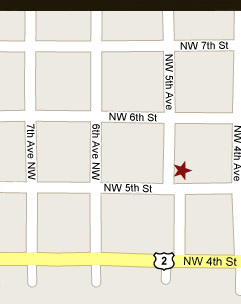 The Swanson Law Office is located on Fifth Street and Fifth Avenue Northwest (across the street to the East of Photo Express and to the North of Ogles Marketplace Foods and Chad Sterle Law Office). Follow the ramp (North side of the building) to the entrance on the rear (East) side of the building.